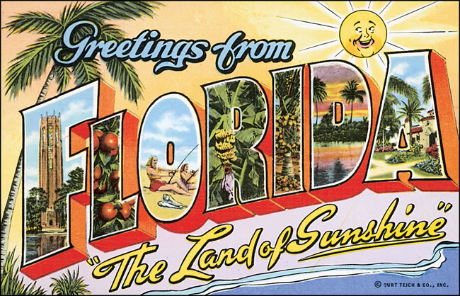 If you love historic Florida tourist stuff, you absolutely MUST take advantage of the wonderful e-postcards offered free by the gentlemen of SarasotaHistoryAlive.com. They are especially fun to send “back North” as the weather up there deteriorates. (The postcards, not the gentlemen. We’re keeping Larry and Lee right here.)