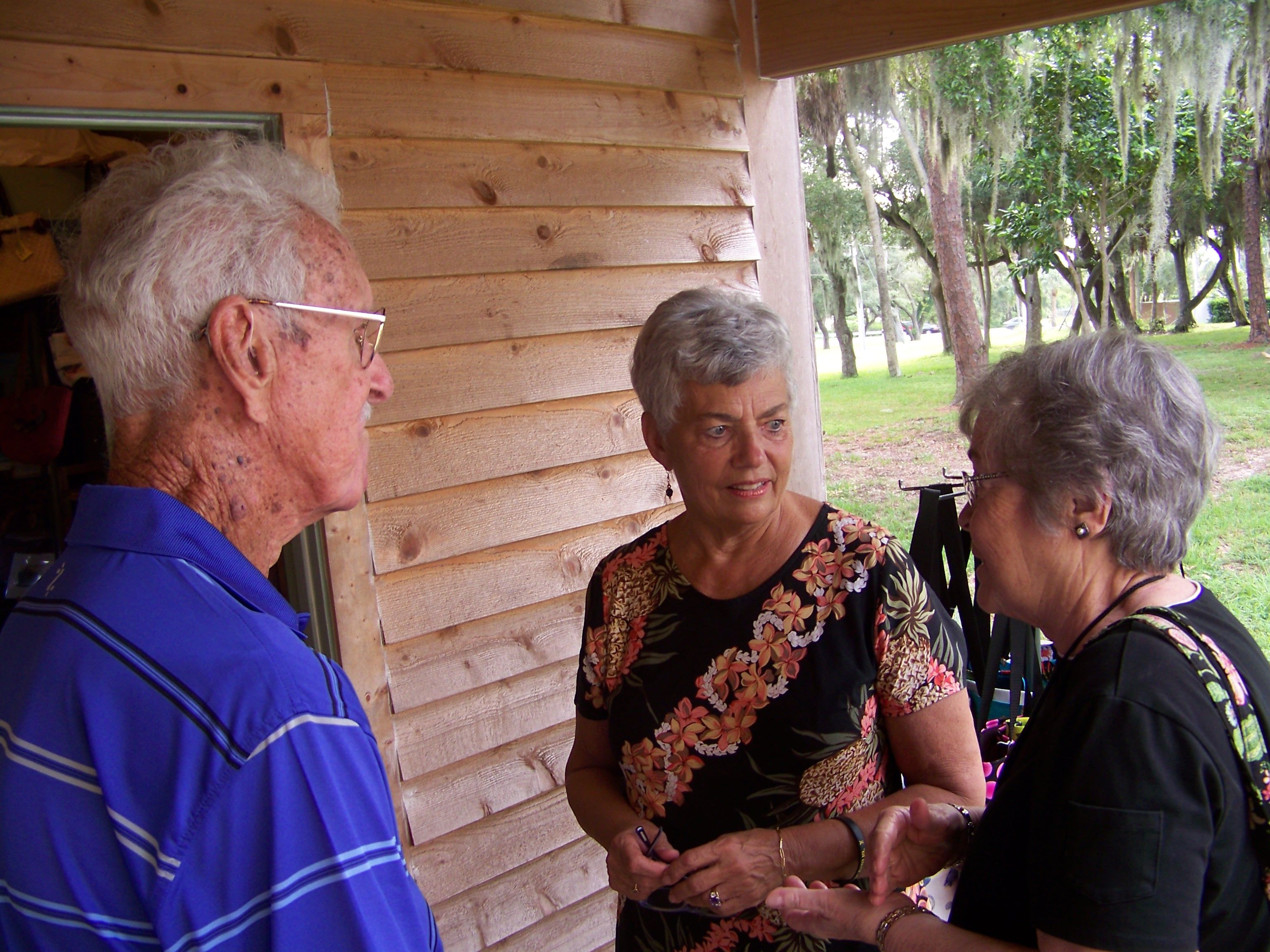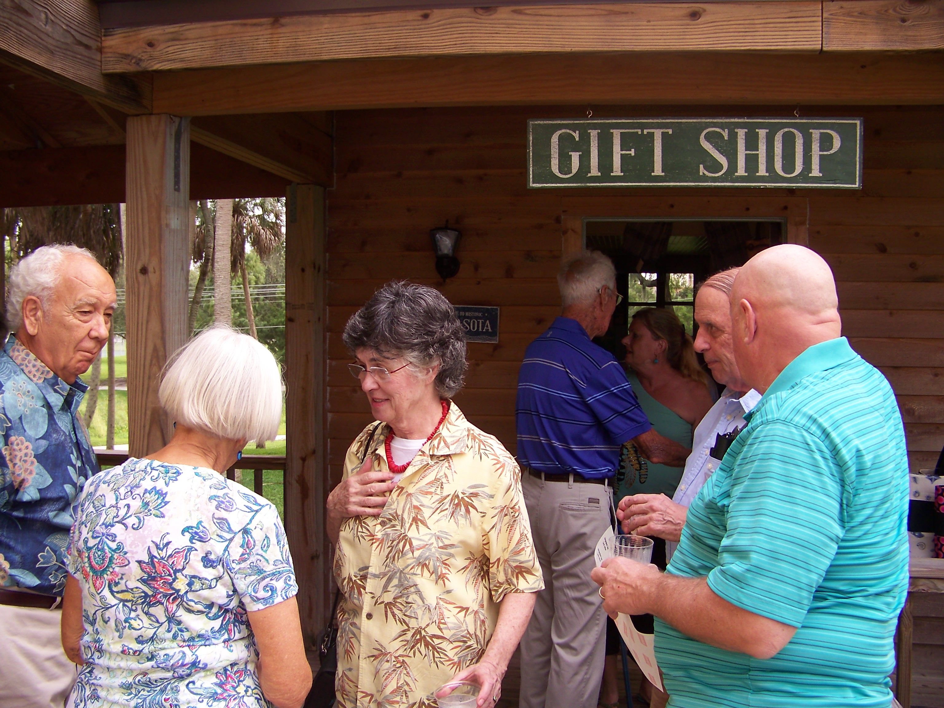 Lively discussion at the Historical Society of Sarasota CountyMembers and guests wait patiently to have their chance to shop in the detached Florida kitchen of the 1882 Bidwell-Wood House.