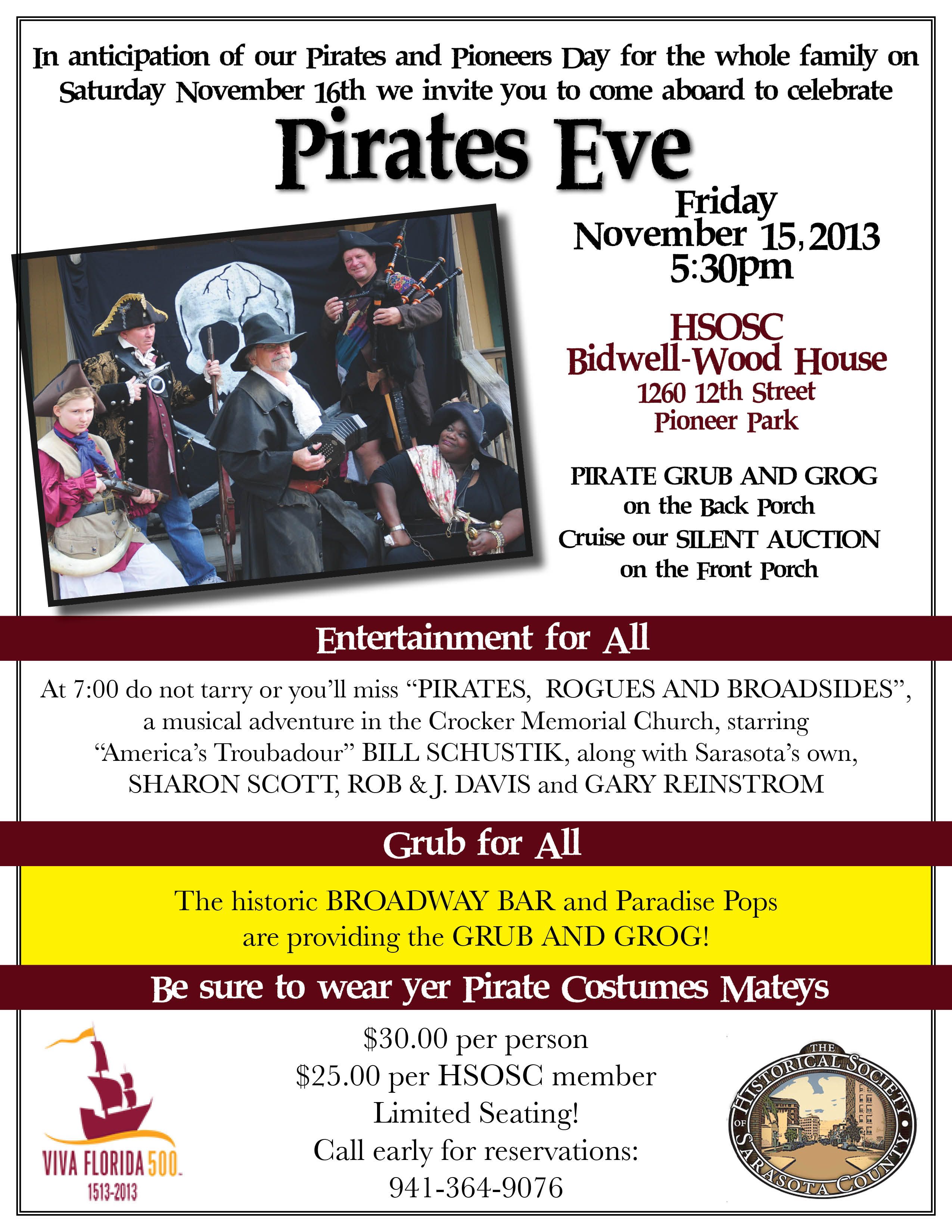 But all of us above Disney-age know that pirates were not the fun-loving critters of film and children’s tales. There’s so much more than Captain Hook and Johnny Depp. To get the real, fantastic story complete with music, grub and grog (and a silent auction of loot!) on Friday evening, November 15 at 5:30pm, reserve your spot now for Pirates’ Eve! This is an evening for adults please… not suitable for impressionable ears.
