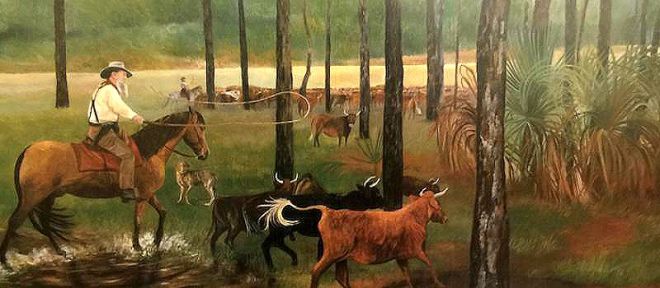 Cracker Cow Hunt, by Casper McCloud, 1993, courtesy Florida Historical Society