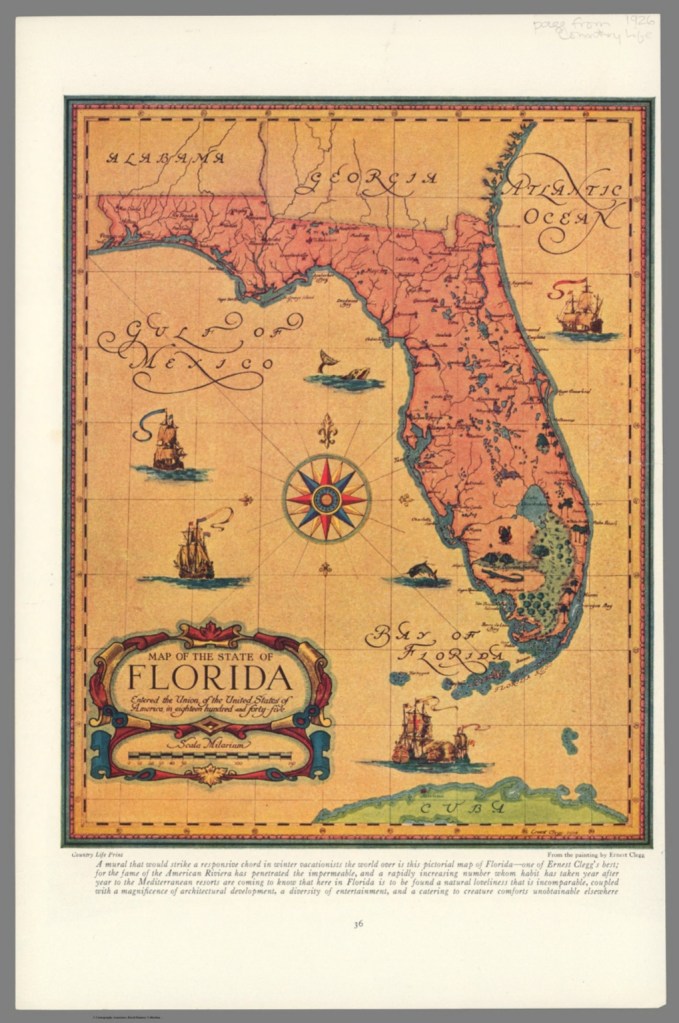 Look at the gorgeous, expansive Everglades… but notice: no Sarasota. Arcadia, yes, Punta Gorda, even Venice (“On June 10, 1926, the first street in Venice opened” as this Venice history says). My only possible explanation for this oversight is that Ernest held Sarasota so dear, he didn’t want anyone else to know about it…