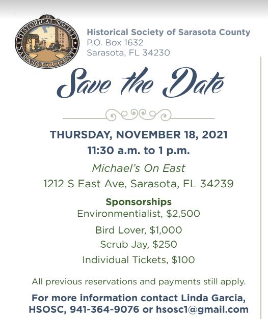 The longest-reigning, as-yet-uncrowned Hero of History at the Historical Society of Sarasota County has been Jon Thaxton. We look forward to finally being able to gather together at Michael’s On East on November 18 to acknowledge Jon’s vast contributions to our regional history. Please join us at this, our traditional luncheon.