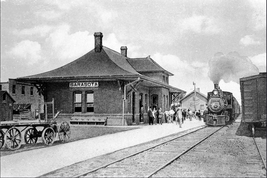 of the past century at Main Street and Lemon Avenue. The Historical Society of Sarasota County, in the person of our beloved late Pete Esthus, salvaged them when the railroad station was being demolished.