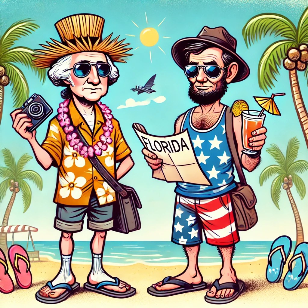 It’s Presidents’ Day (yeh, they merged George and Abe into one entity in 1968*) weekend, so Be on the Lookout for these two tourists. If spotted, do not approach. They hate being asked for autographs. Best hunting grounds: the Early Bird Specials.