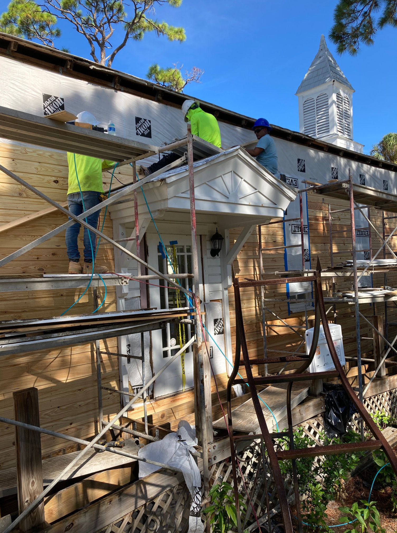 Thanks to our donors, soon the east wall of the Crocker Memorial Church will be done (here, you see the workers installing the milled wood siding) and we can start on another aspect of the Church’s facelift!