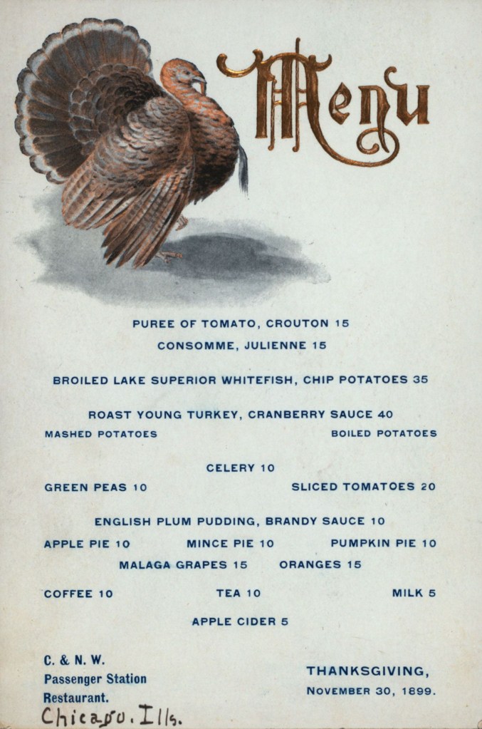 So when I came across a treasury of turn-of-the-last century (that’s 1898-1899 to us history-minded folks) Thanksgiving menus, I was pleased to see mince pie on nearly every one. I was beginning to think that such a pie was a figment of my imagination.