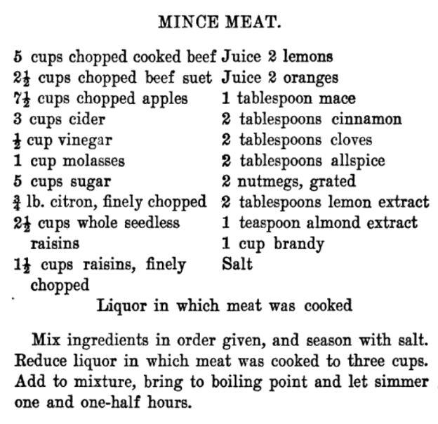 A 1905 recipe. No, “modern” mincemeat doesn’t have meat or suet in it.