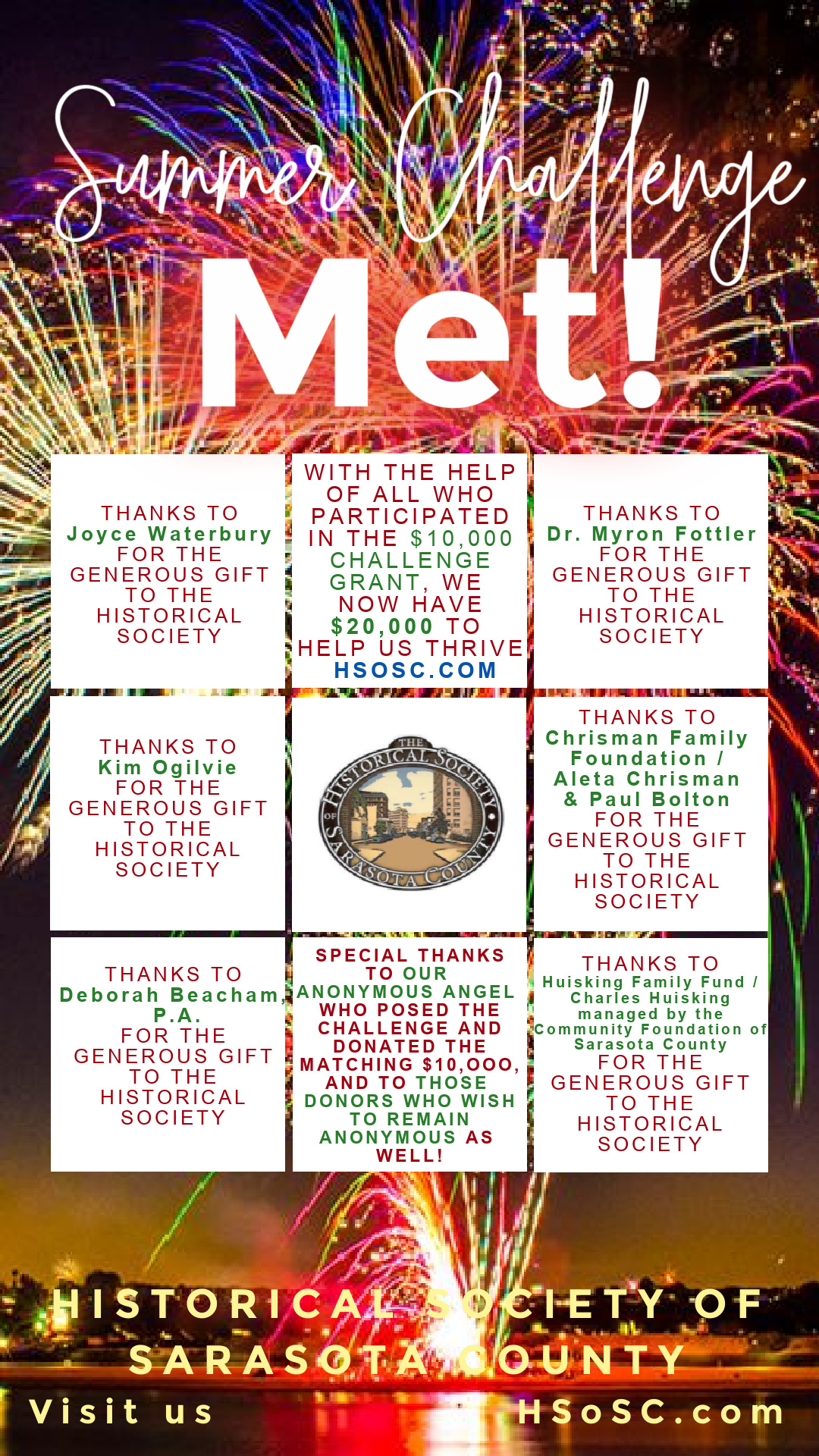 To all who heeded the call from a small nonprofit struggling in these times to keep the two historical Sarasota buildings we protect, preserve, and present… we are so proud to tell the world that