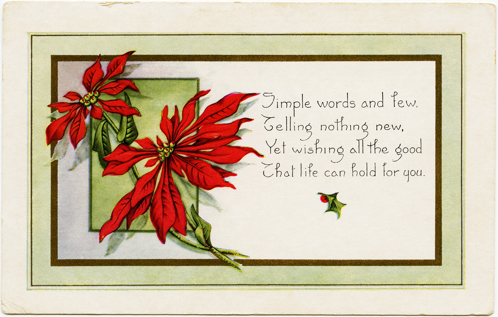 Poinsettia Published December 22, 2013 at 1728 × 1102 in ← Previous Next → Why poinsettias at Christmas time? Click to find out. Vintage postcard illustration from olddesignshop.com Tell the world: Print (Opens in new window) Print Email a link to a friend (Opens in new window) Email Like Loading...