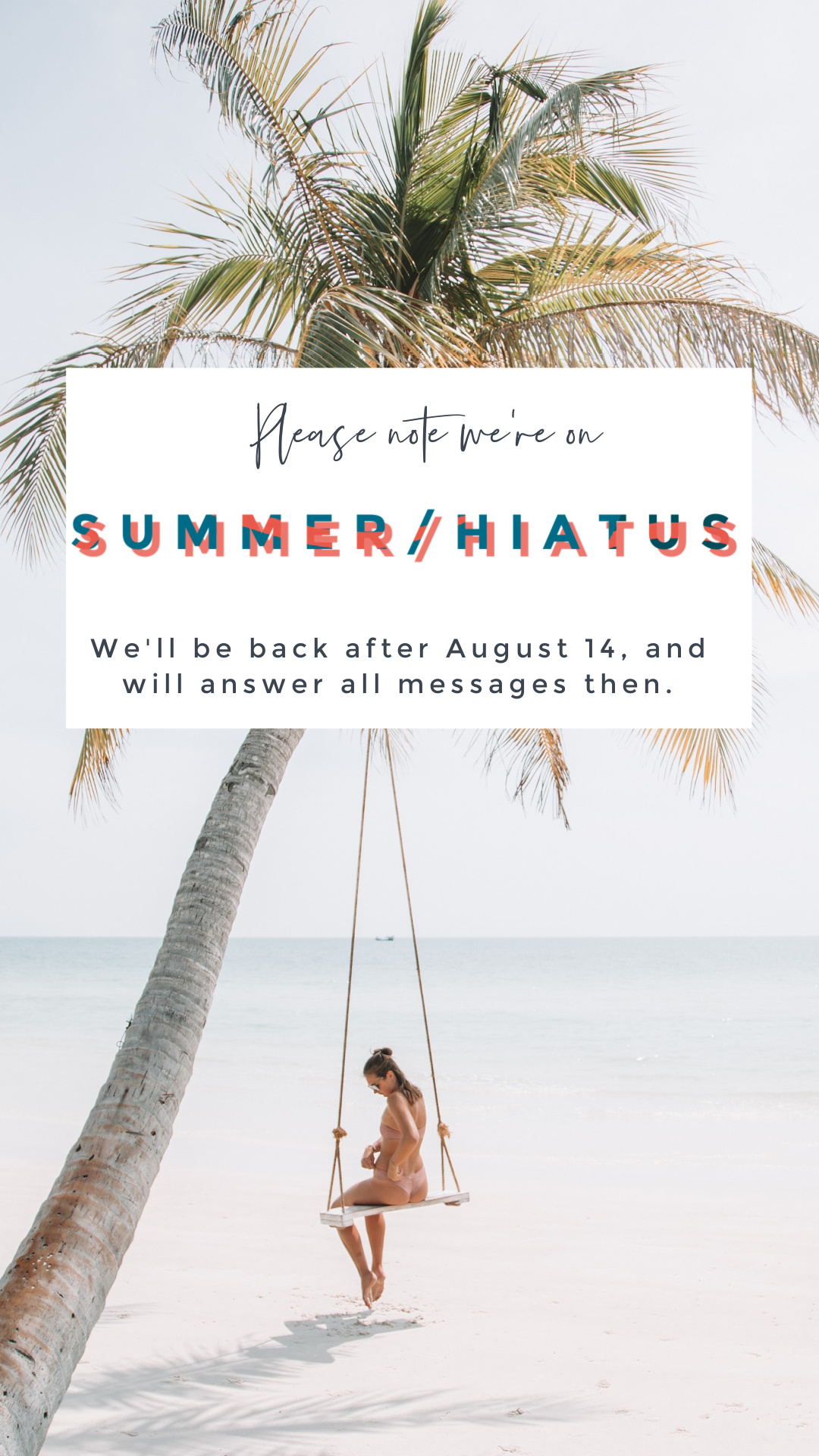 summer-hiatus Published August 4, 2023 at 1080 × 1920 in ← Previous Next → Tell the world: Print (Opens in new window) Print Email a link to a friend (Opens in new window) Email Like Loading...